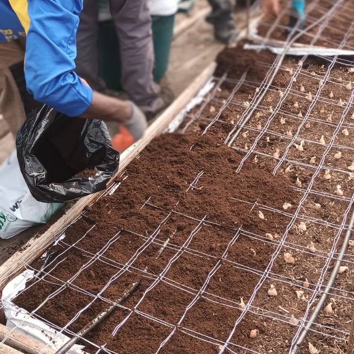 Les élèves de CAP Métiers de l’Agriculture 1ère année ont participé à la mise en place et à la plantation des bulbes de freesia dans le tunnel de floriculture.